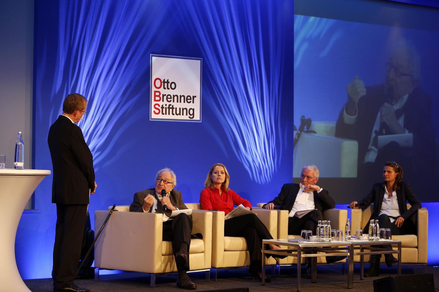 Auf dem Podium diskutierten Monika Wagener (Redakteurin WDR-Monitor), Astrid Frohloff (Moderatorin rbb-Kontraste), Peter Merseburger (ehemaliger Moderator NDR-Panorama) und Claus Richter (ehemaliger Redaktionsleiter ZDF-Frontal 21). Die Diskussions wurde von Stephan-Andreas Casdorff, Chefredakteur des Tagesspiegel, moderiert.