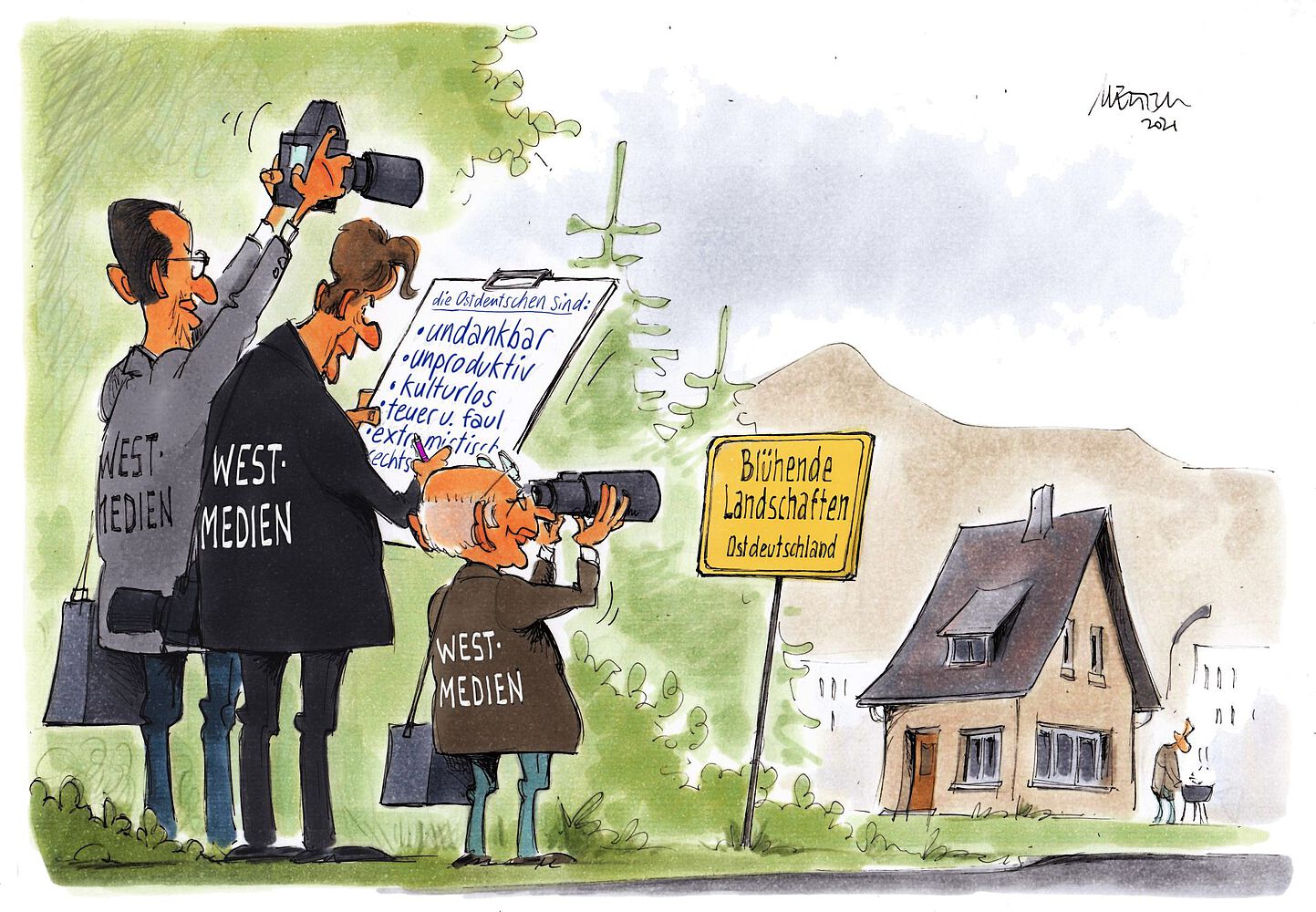 Unser OBS-Arbeitspapier fragt, ob westdeutsch geprägte Medien, die im besserwisserisch-belehrenden “Auslandsduktus” über die neuen Bundesländer („Dunkeldeutschland“) berichtet haben, mit zu jenen Vertrauensverlusten beitragen, die den Lügenpresse- und Staatsfunk-Rufer*innen Raum geben. Haben Monopolisierung und Provinzialisierung des Medienangebots und die mangelhafte Beteiligung Ostdeutscher in überregionalen Leitmedien eine Verschiebung des gesellschaftspolitischen Klimas bewirkt und Mobilisierungserfolge populistischer Bewegungen begünstigt?