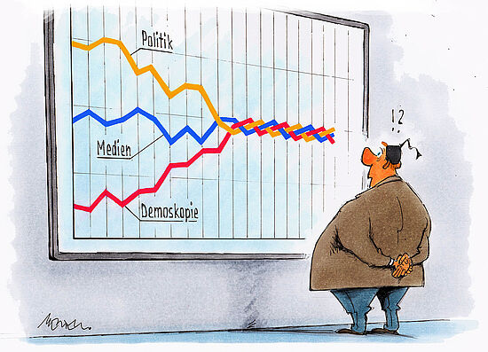 Demoskopie und ihre Umfrageergebnisse sind wichtige Bestandteile der politischen Kommunikation. Medien geben Meinungsforschung in Auftrag und verwerten die Ergebnisse. Politik nutzt Umfragen, um über das Meinungsklima in der Bevölkerung informiert zu sein. Dadurch hat sich über die Jahre ein demoskopisch-medial-politischer Komplex herausgebildet. Allerdings verändern sich die gesellschaftlichen und technischen Rahmenbedingungen für Meinungsforschung gerade tiefgreifend. So eröffnet das Internet einen neuen Zugang zu den Stimmungen und Haltungen der Menschen. Innerhalb der Branche hat sich der Wettbewerb zwischen den etablierten Instituten, die an den althergebrachten Methoden festhalten, und den aufstrebenden Online-Meinungsforschern verschärft. Es geht um die Produktions- und Verwertungsbedingungen von Demoskopie in der Zukunft.